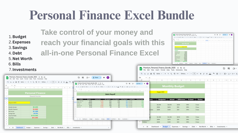 Personal Finance Excel Bundle – Budget Tracker, Expense Log, Savings & Debt Planner